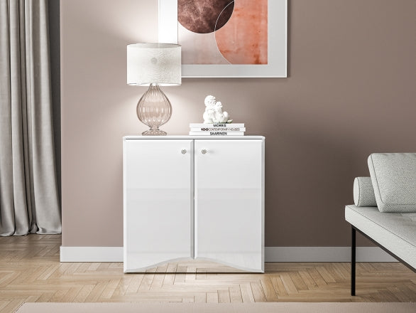 Komoda Glamour to połączenie kompaktowych wymiarów, ponadczasowej estetyki i praktycznego wnętrza. Jej zgrabna, symetryczna bryła z pełnymi frontami i stylowymi gałkami doskonale odnajdzie się w salonie, jadalni, przedpokoju czy domowym biurze, dodając przestrzeni harmonii i elegancji.