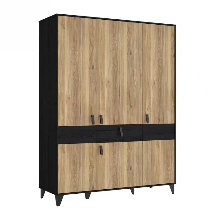 Szafa posiada trzy drzwi, które zapewniają łatwy dostęp do wnętrza. Drzwi są solidne i wytrzymałe, a ich stylowe uchwyty ułatwiają otwieranie i zamykanie.