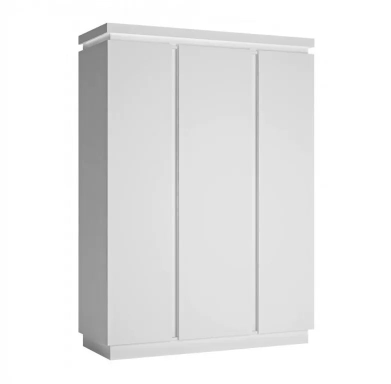 Kolorystyka szafy trzydrzwiowej to biały alpin oraz biały połysk frontów.Cichy domyk to cecha, która sprawia, że drzwi szafy zamykają się płynnie i bezszelestnie. To szczególnie przydatne w sytuacjach, gdy chcemy uniknąć hałasu i zachować spokój w pomieszczeniu.Szafa trzydrzwiowa została wykonana z laminowanej płyty meblowej, co gwarantuje jej trwałość i łatwość w utrzymaniu czystości. Laminowany materiał jest odporny na zarysowania i uszkodzenia, co sprawia, że szafa będzie służyć przez długi czas.Dodatkową opcją jest zakup paska LED, który można zamontować w górnej zewnętrznej wnęce szafy. To oświetlenie dodatkowo ułatwi widoczność zawartości szafy.
