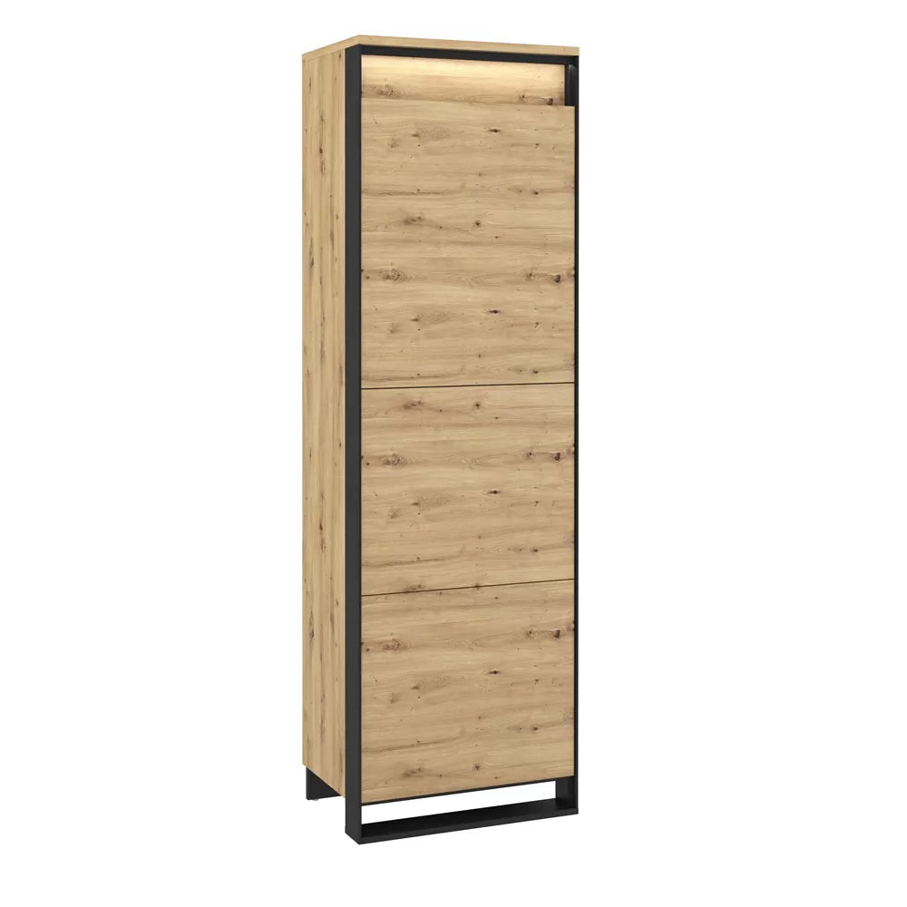 Kolorystyka szafy Quant to dąb artisan w połączeniu z czarnym, tworząc harmonijną kombinację kolorów, która dodaje wnętrzu nowoczesnego wyglądu. Kombinacja naturalnego drewna z czernią nadaje meblowi elegancji i stylu.