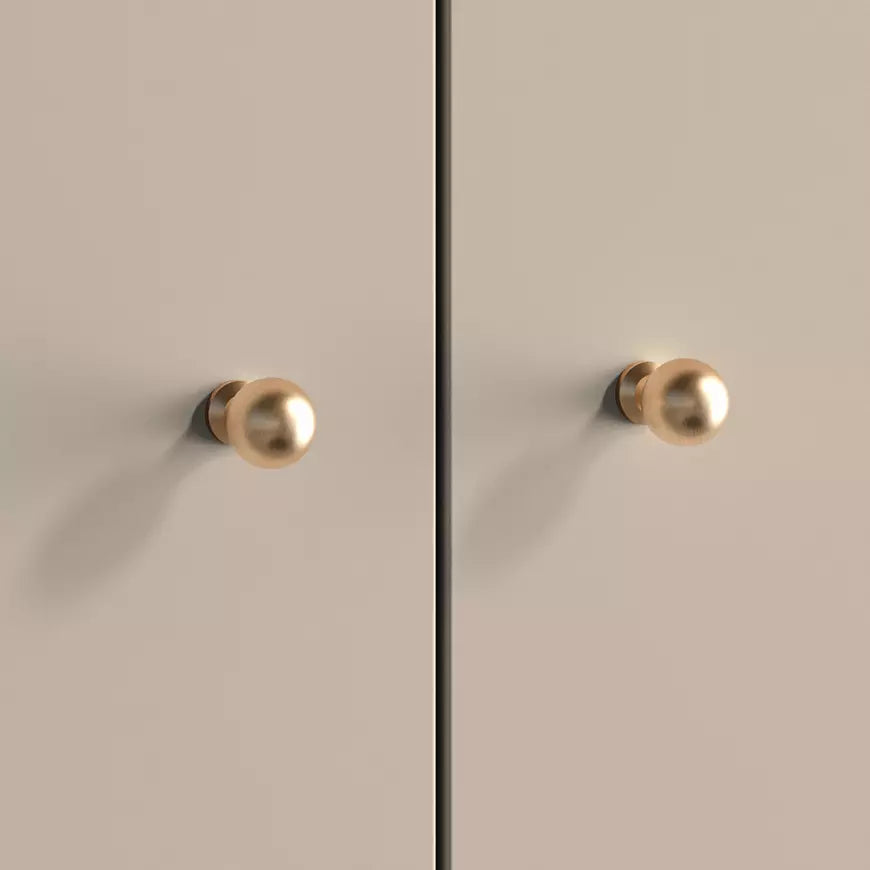 Aby podkreślić ekskluzywny charakter mebla, szafa wyposażona jest w uchwyty wykonane ze szczotkowanego złota, które dodają delikatnego blasku.