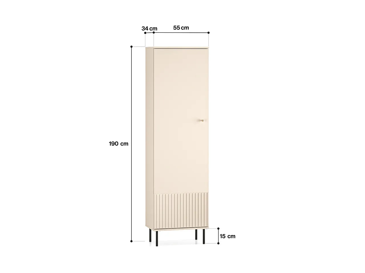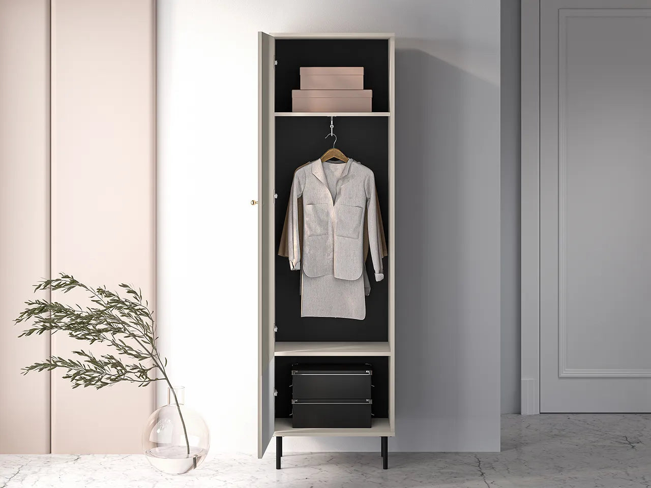 Poznaj szafę Sophie, najnowszy model w naszej wyjątkowej kolekcji mebli. Ta pojedyncza szafa słupek z drzwiami uchylnymi idealnie wpasuje się w każdą przestrzeń, oferując funkcjonalność i styl w jednym.