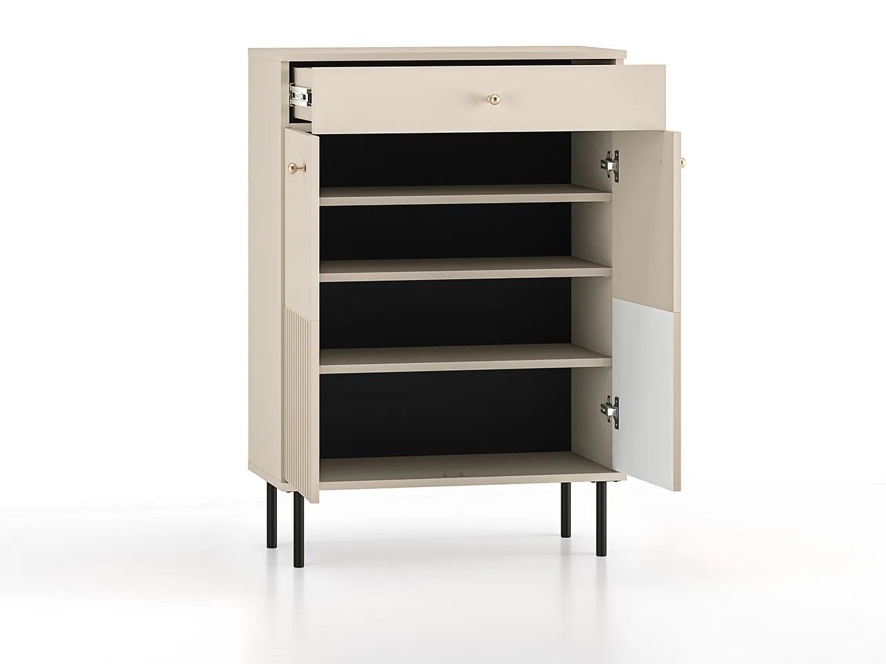 Szafka na buty: Szafka na buty Sophie wyposażona jest w szafkę z drzwmi uchylnymi, które umożliwiają przechowywanie butów w sposób uporządkowany i łatwo dostępny.