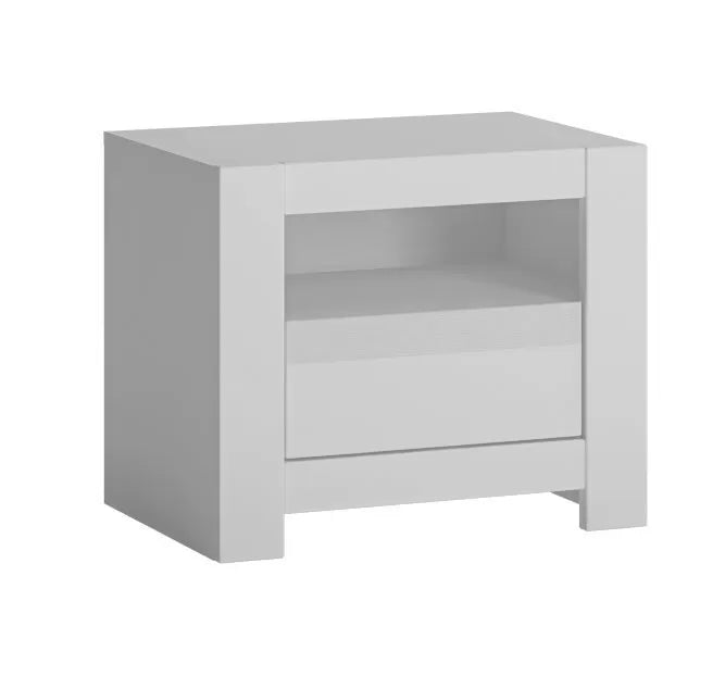 Szafka nocna Novi doskonale spełnia swoją funkcję jako miejsce do przechowywania książek, telefonu, lampki nocnej czy innych drobnych przedmiotów w sypialni.