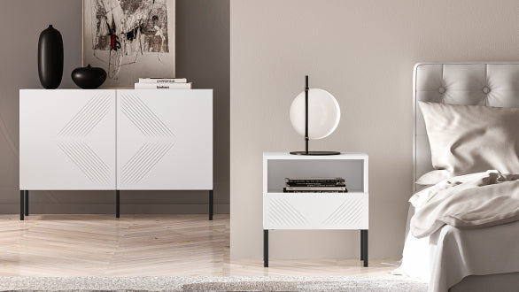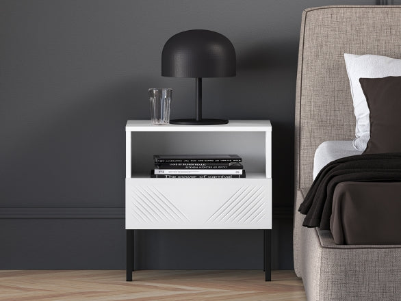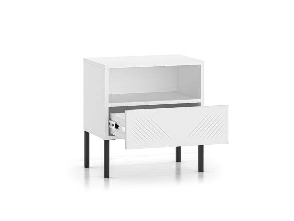 Szafka nocna Clearing biały mat nózki metalowe czarne