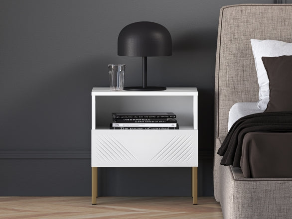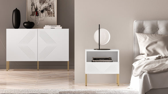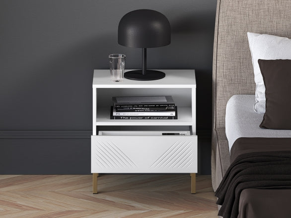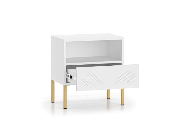 Szafka nocna Clearing biały mat nózki metalowe złote