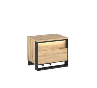 Oryginalna kolorystyka dąb artisan w połączeniu z czarnymi detalami nadaje szafce nocnej Quant wyjątkowego charakteru. To połączenie ciepłego drewna i nowoczesnej czerni tworzy harmonijną kompozycję, która doskonale wpisuje się w różnorodne aranżacje sypialni.