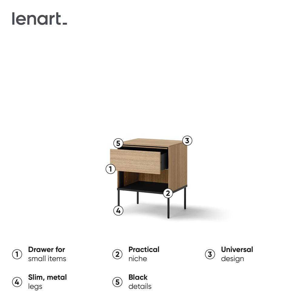 Wybierając nasz stolik nocny, inwestujesz w jakość. Każdy z naszych modeli wykonany jest z wytrzymałych materiałów, co gwarantuje trwałość i odporność na codzienne użytkowanie. Solidna konstrukcja zapewnia stabilność, a precyzyjne wykończenie sprawia, że stolik zachowa swój nienaganny wygląd przez długi czas. Dzięki temu jest to mebel, który będzie Ci służył przez lata.