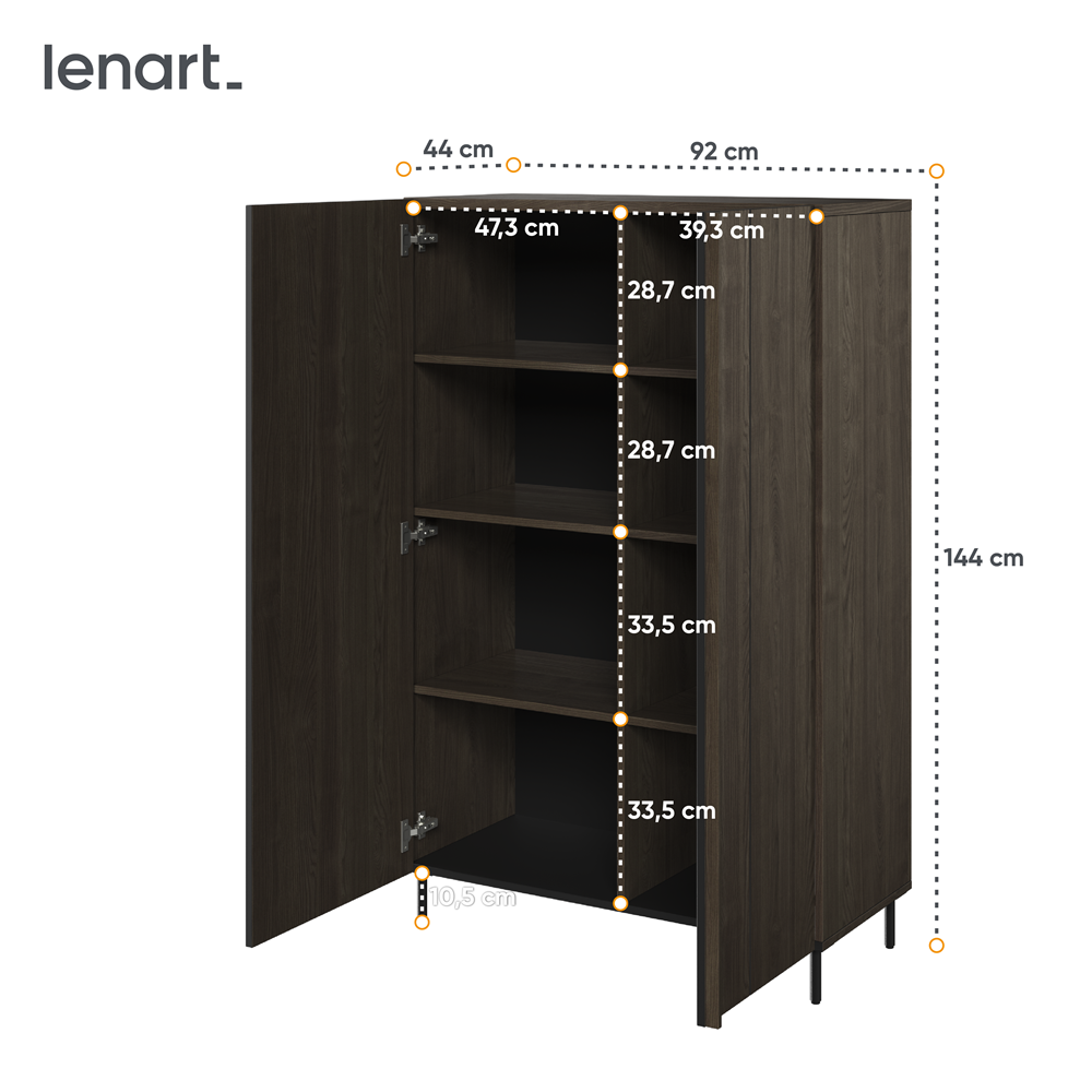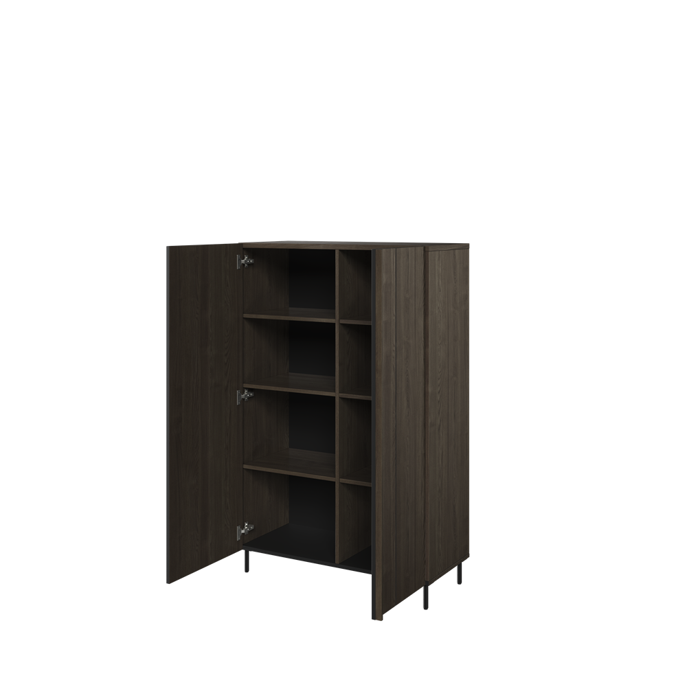 Elementem komody Piemonte są półki zamykane, które pozwalają na przechowywanie przedmiotów wewnątrz komody, ale jednocześnie utrzymują je ukryte i uporządkowane. To doskonałe rozwiązanie dla osób ceniących estetykę i porządek w swoim wnętrzu.
