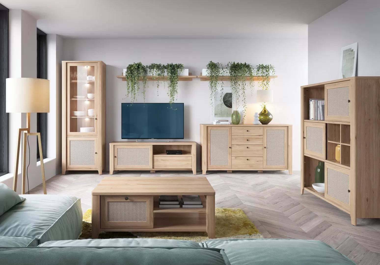 Szafka RTV Cestino w kolorze Jackson Hickory/Amadeus to stylowe rozwiązanie do przechowywania sprzętu multimedialnego w Twoim salonie. Ta szafka została zaprojektowana z uwzględnieniem funkcjonalności i estetyki.