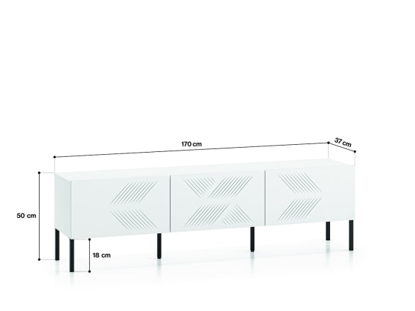Szafka RTV Clearing na nóżkach to funkcjonalny mebel przeznaczony do organizacji strefy RTV w salonie. Jej wymiary 170 × 50 × 37 cm zapewniają wystarczającą przestrzeń na telewizor, sprzęt multimedialny oraz niezbędne akcesoria, ułatwiając utrzymanie porządku w strefie wypoczynkowej.