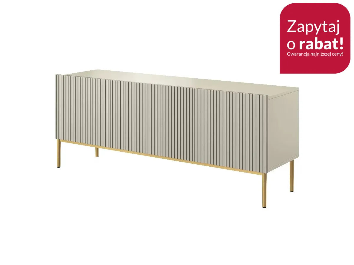 Szafka RTV Nicole to elegancki mebel, który wyróżnia się szczególnie starannym wykonaniem oraz wysokiej jakości materiałami. Jej front został wykonany z frezowanego MDF, co nadaje mu niepowtarzalny, ręcznie wykończony charakter. To sprawia, że szafka prezentuje się nie tylko solidnie, ale także dodaje wnętrzu nuty luksusu.