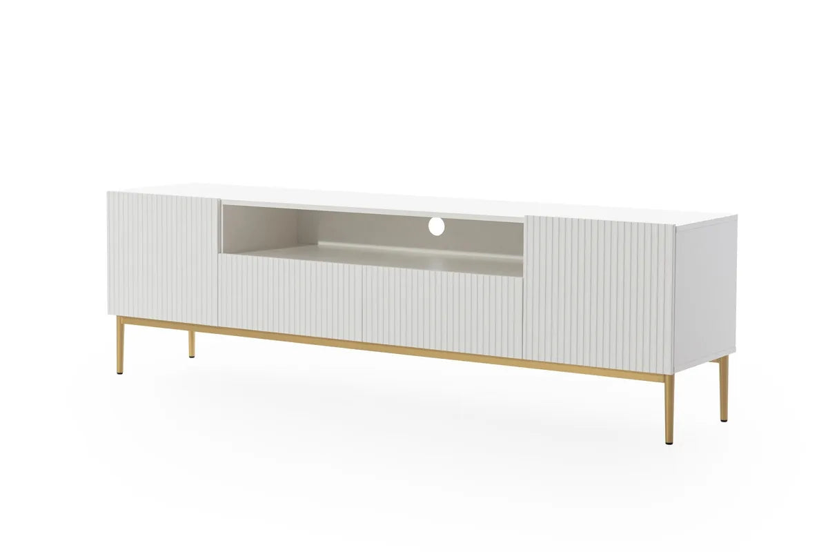 Szafka RTV Nicole wnęka biały mat frez złote nóżki