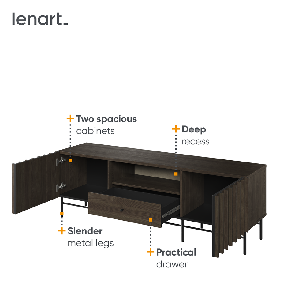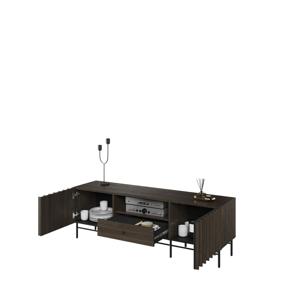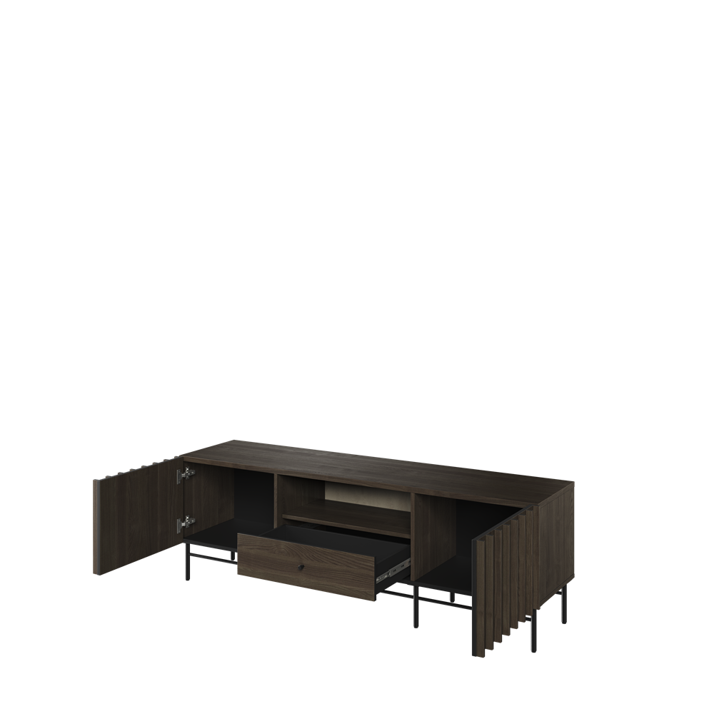 Szafka RTV Piemonte to elegancki mebel, idealny do przechowywania sprzętu multimedialnego i dekoracji w salonie. Posiada drzwiczki z frezowanymi frontami, które nadają meblowi wyjątkowego charakteru. Frezowane detale dodają subtelności i estetyki, tworząc modny wygląd.
