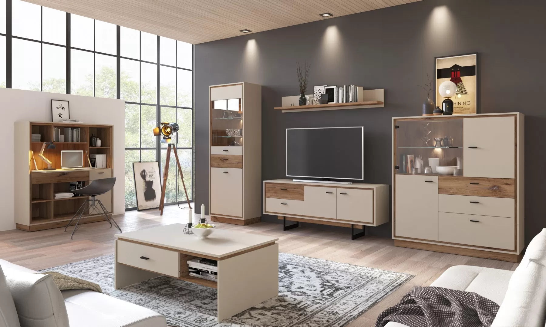 Szafka RTV Rivero to funkcjonalne i stylowe rozwiązanie do przechowywania sprzętu multimedialnego i dekoracji w salonie. Posiada dwie szuflady, które umożliwiają organizację mniejszych przedmiotów, takich jak piloty, kable czy inne akcesoria. Dodatkowo, szafka ma zamknięte półki, idealne do przechowywania elementów, których nie chcemy mieć na widoku.