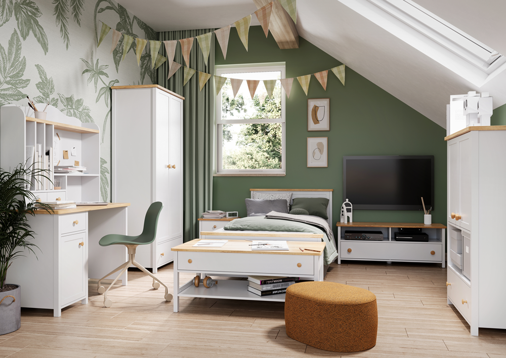 To mebel o unikatowym designie. Biała konstrukcja w połączeniu z drewnianymi detalami nadaje mu wyjątkowego charakteru, będącego doskonałym wyborem dla miłośniczek klasycznych aranżacji.