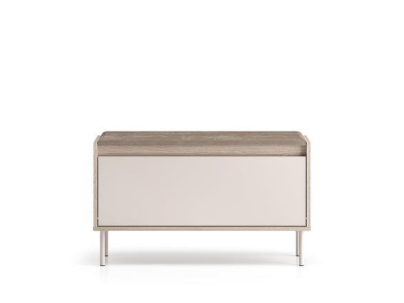 Szafka dostarczana jest do samodzielnego montażu, co ułatwia transport i ustawienie w dogodnym miejscu. Prosta, nowoczesna forma z gładkim frontem w kolorze Cashmere i smukłymi nóżkami tworzy dyskretną, funkcjonalną zabudowę miejsca na buty, pasującą do minimalistycznych, skandynawskich i klasycznych aranżacji wnętrz.