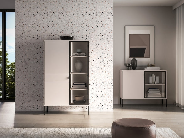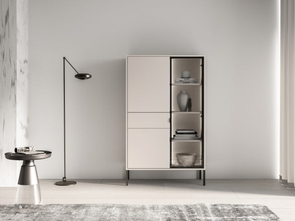 Witryna o wysokości 150 cm to harmonijne połączenie nowoczesnego designu z praktycznymi rozwiązaniami do codziennego użytku. Prosta, stylowa bryła doskonale odnajduje się w aranżacjach salonu, jadalni czy gabinetu, dodając wnętrzu lekkości i elegancji. Przeszklony front w połączeniu z wbudowanym oświetleniem pozwala efektownie wyeksponować dekoracje, szkło lub kolekcje, tworząc przyjemny klimat także po zmroku.