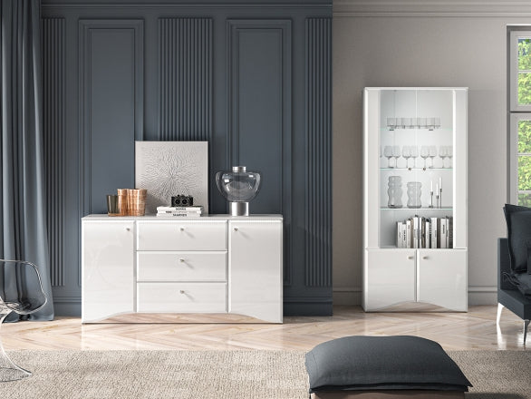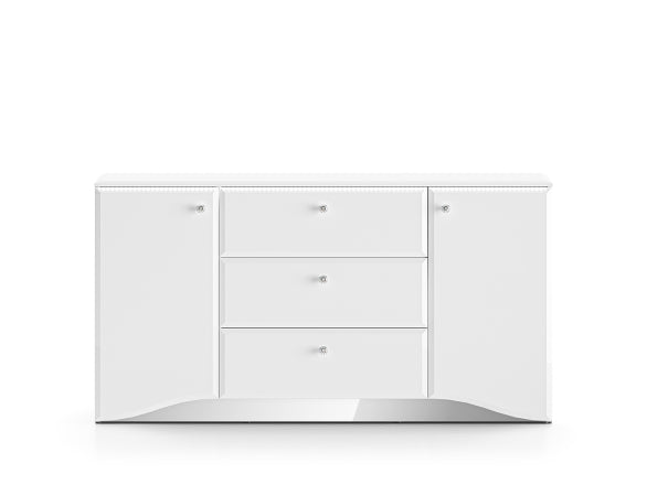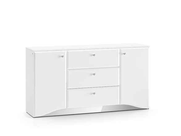 Komoda Glamour to funkcjonalny i stylowy element wyposażenia salonu, jadalni lub sypialni. Łączy pojemne wnętrze z praktycznym, prostokątnym blatem, który doskonale sprawdzi się jako miejsce na dekoracje, lampę, kwiaty czy ramki ze zdjęciami. Harmonijna bryła i pełne fronty nadają wnętrzu uporządkowany, elegancki charakter.